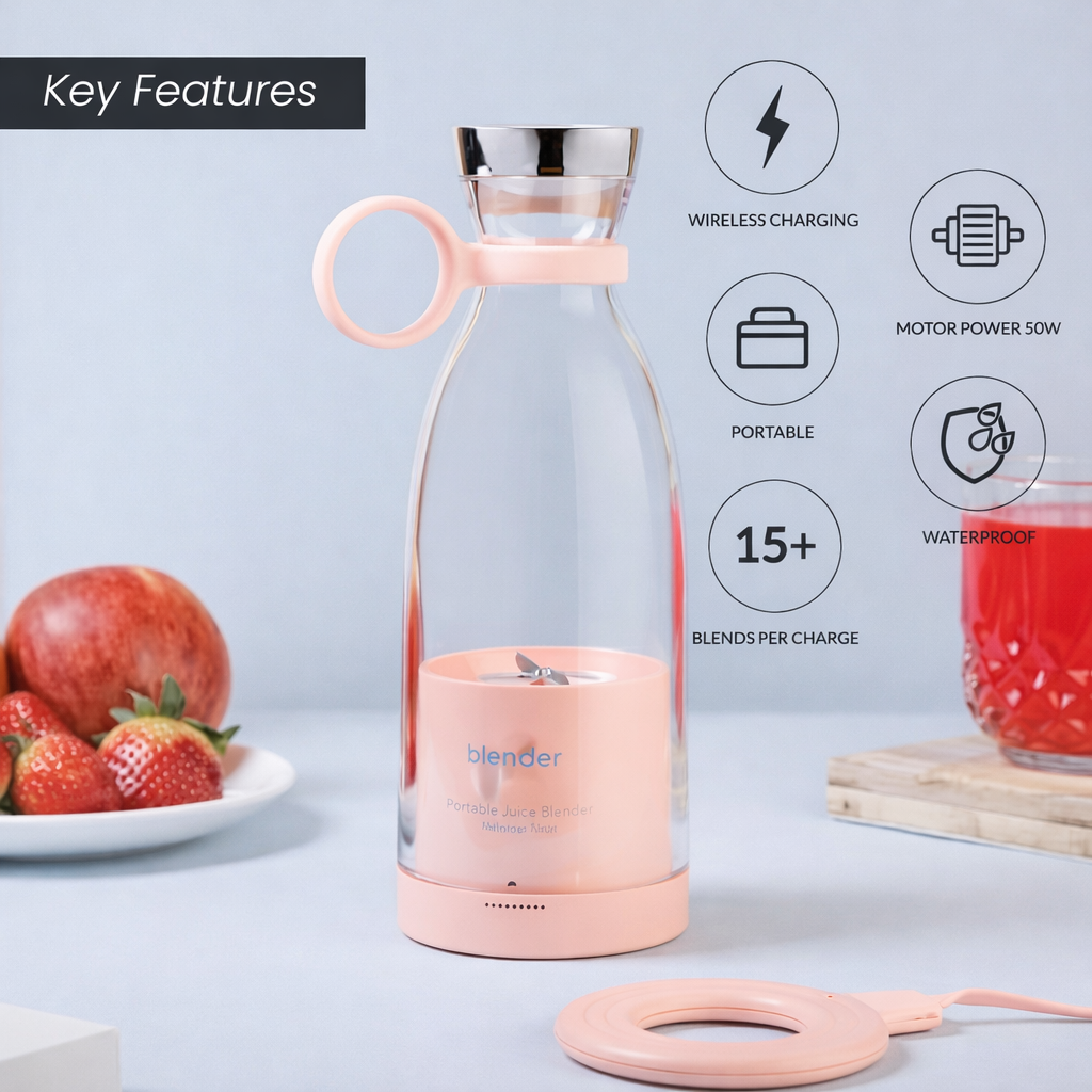 This portable mini juice blender is perfect for making fresh juices, smoothies, and shakes anytime, anywhere. Its USB rechargeable feature allows convenient charging with a power bank, laptop, or adapter. The compact and lightweight design makes it ideal for travel, gym, office, and daily use.